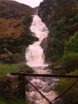 Bernadette, bless her, offered up alternatives to my outdoor plans. "This isn't a fit day to be out and about at all!" says Bernadette, "Perhaps a visit to Donegal Town and the shops there instead?" Rain & sleet be damned, I wouldn't be deterred from my original plans. After all, it was only rain and wind. I have been out in much worse. Off I set for Killybegs and then the Sliabh Liag (Slieve League) cliffs. Just after turning onto the Killybegs road, I spotted a sign that read "Waterfall - Maghera Strand". I made a right turn and headed towards the falls that I had seen from the sunroom and my bedroom window. A good twenty minutes later I came to a stop at Assaranca Falls. They are even more mesmerizing up close. I am sure that on a clear or at least dry day, there are many people visiting the falls. It is the gift of stormy days to allow only those brave and foolish enough to be out in it the experiences which can only be enhance by the elements themselves. I spent almost an hour there taking photos. I am especially fond of the shots in which I incorporated the bridge in the foreground.