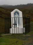 After that, it was back out to the main road, having to backtrack due to a road closure, and on towards Glencolumbcille. It was fairly late when I arrived in Glencolumbcille so I didn't stop but for a moment to take a picture as I was coming in to the village. I continued on towards Glengesh Pass and on to Ardara. The rains picked up as I began the twisting drive up to Glengesh Pass. I took advantage of each pullout to capture the every changing beauty of the pass at every turn. Even in the rain or maybe because of it, GlenGesh Pass had an ethereal quality. I stopped at the top of the Pass, leaving Peg in the pullout and ventured out into the rains to take photographs of the waterfalls cutting new crevasses into the hillsides. I also said a prayer for all those who travel the pass at the statue of Mary. Someday I hope to actually see the Glengesh Pass in sunlight. I have always traversed it in the grey and wet.