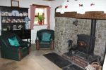 As we headed out of Blarney, the Faeries must have whispered in FLANO's ear as we ended up turning left instead of right out of Blarney. The left turn led us deep into the countryside along narrow roads, with "coin-flip" decisions on whether to turn right or left, trying to determine how we had crossed over the M-20 or under it without even trying, as we started east of it and ended up west of it. At a T-intersection, we gave Ma the choice "Left or Right". "Left" says she and so left we went. It wasn't even five minutes later that our cottage materialized from the rainy mist. We asked MA, "Why did you choose left?" She said "In the states, I would have said right. I figured everything is opposite here so I chose left."
